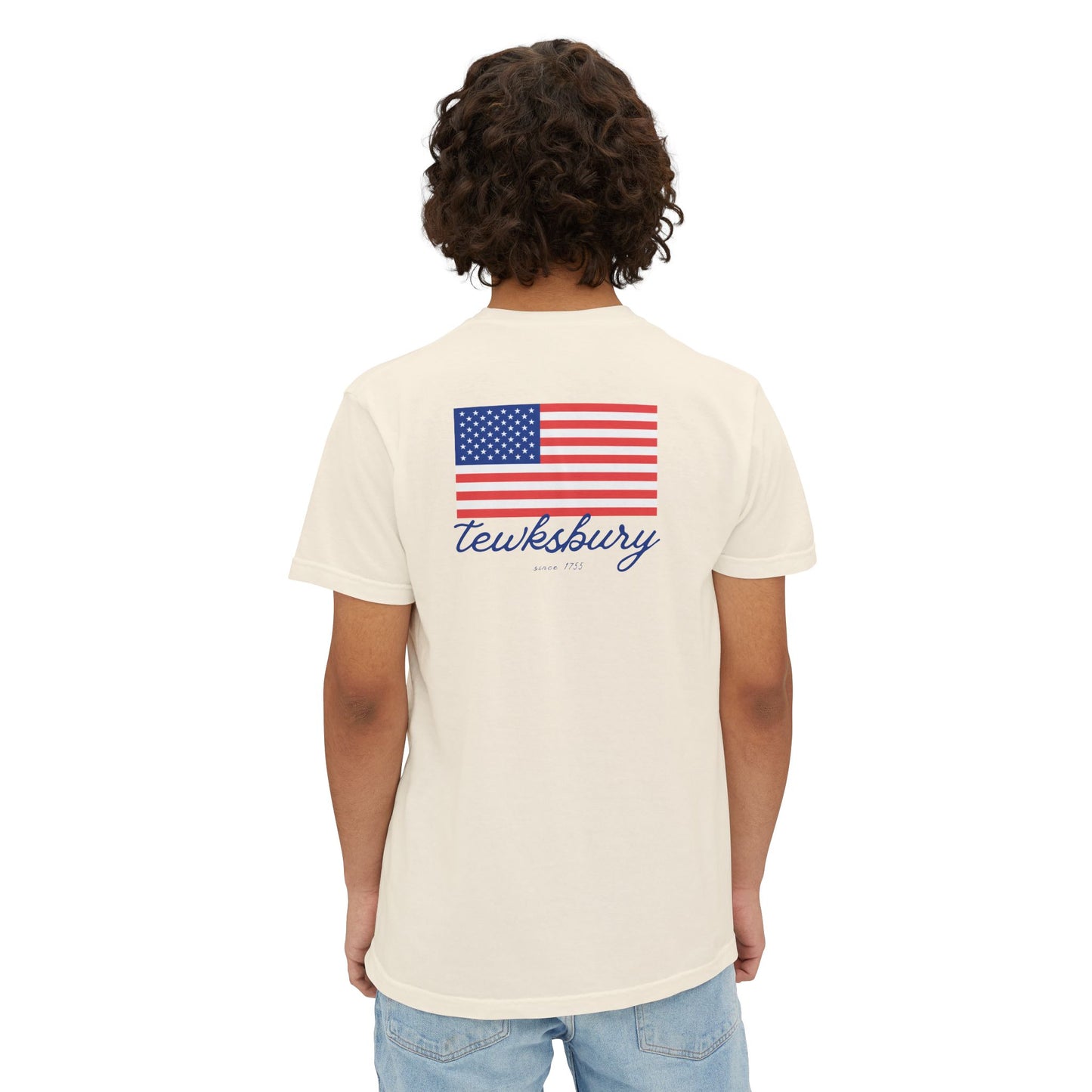 Get ready for the Summer with our Tewksbury Flag Pocket Tee! Featuring a sleek American flag logo on the chest pocket and a larger design on the back, this tee combines patriotic style with local pride. Perfect for casual outings or relaxing at home, this shirt lets you show off your Tewksbury spirit in comfort and elegance. Celebrate all the Summer holidays with flair!